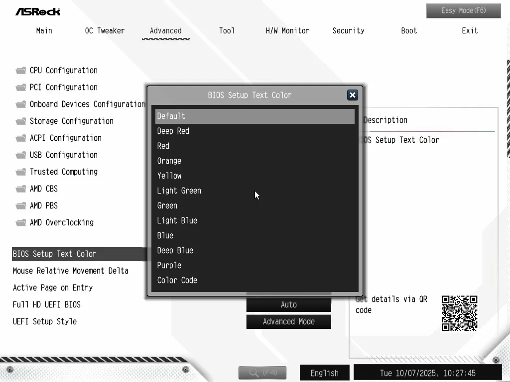 While there are several submenus under the GUI’s Advanced tab that can do classic things like disable various onboard interfaces and access AMD PBO controls, the bottom section allows users to alter their firmware GUI color scheme, mouse sensitivity, and entry GUI style.
