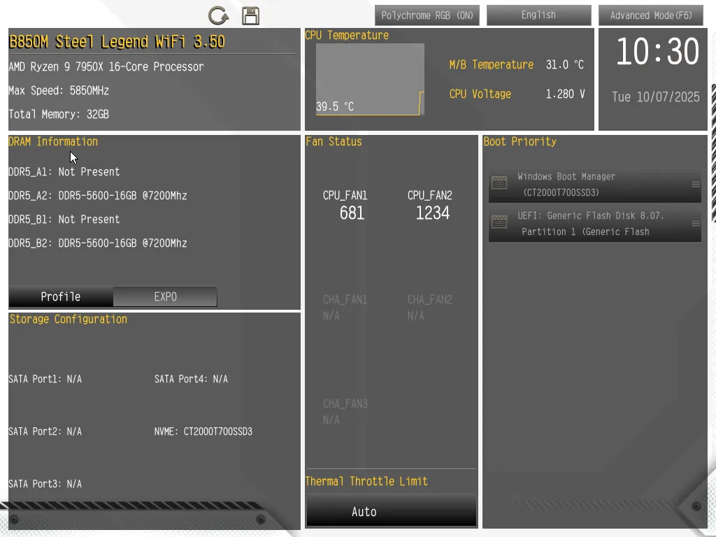 As we said before, users can enter a simplified Easy Mode GUI if the Advanced Mode options appear overwhelming, but there isn’t much here behind a simplified Profile 1 selector for EXPO memory, a more difficult boot priority selector and a setting that adjusts CPU throttle temperature.