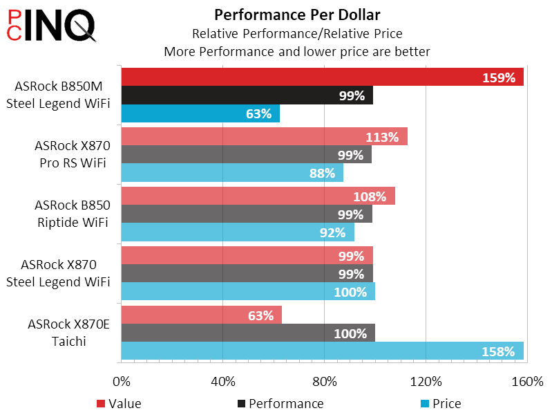 Having said that, the 12 core-phase CPU voltage regulator helps ASRock sell the B850M Steel Legend WiFi at a far lower price than its 14 core-phase B850 Riptide WiFi. Take a look at that value score!