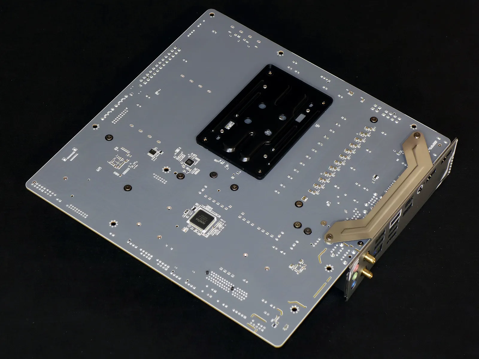 The back of the B850M Steel Legend WiFi has a few ICs too, including the BIOS Flashback and Nuvoton Super I/O controllers.
