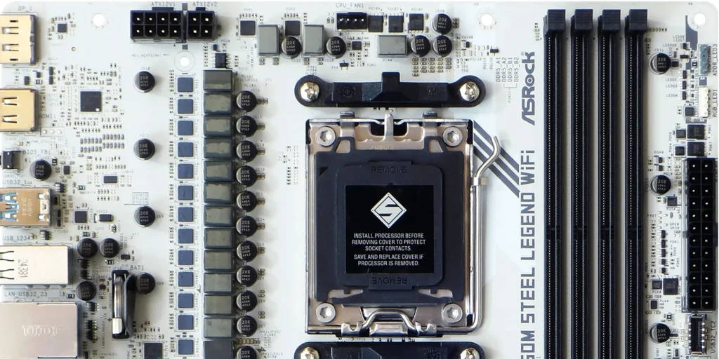 Also note that ASRock slide the PCIe 5.0 x16 slot one space closer to the CPU: This isn’t a requirement of Micro ATX, but it is needed by some slim cases to properly align the riser card.