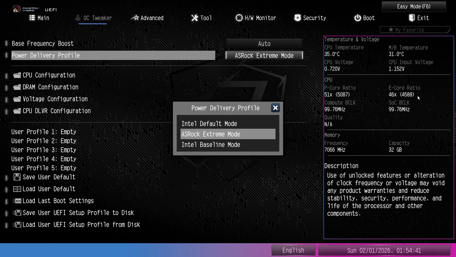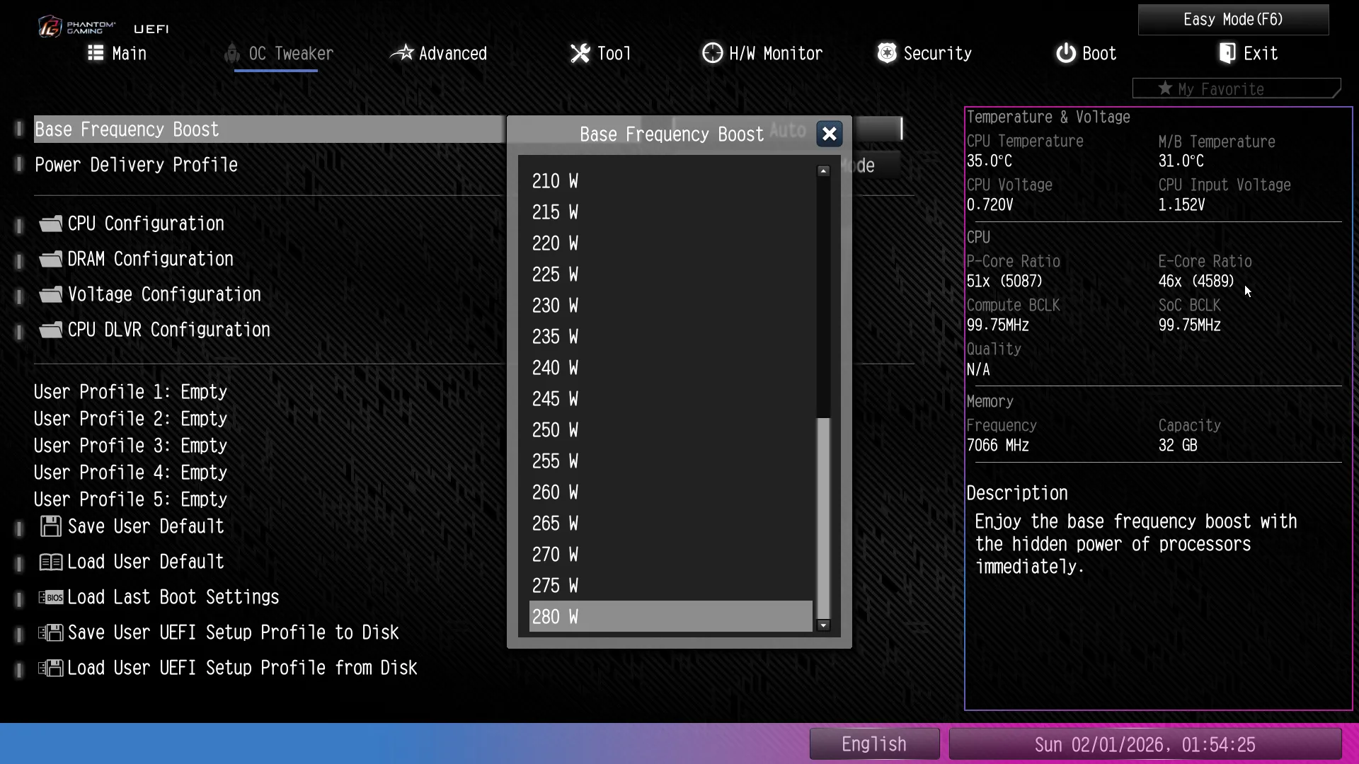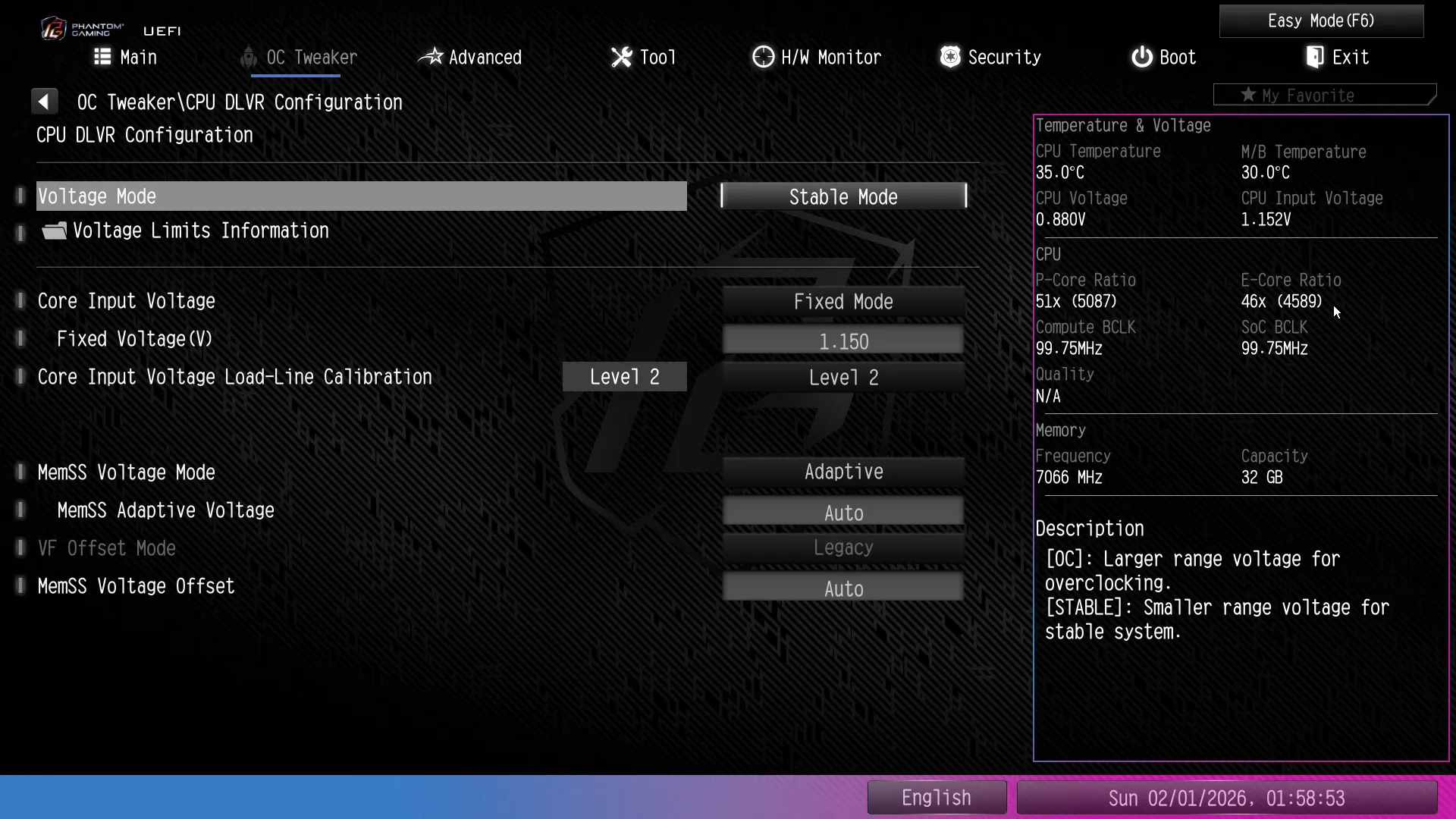 Since our Core Ultra 9 285K is constantly bouncing against thermal limits, the best way we’ve found to improve performance is to reduce our core voltage to the minimum required to maintain a given clock under a given load. But the last part in core voltage regulation is on the CPU, and Intel locks that out that access whenever it’s being hosted by a B-series board. Lowering input voltage going to the CPU’s internal voltage regulator helps a little, but not as much as we’d hoped.