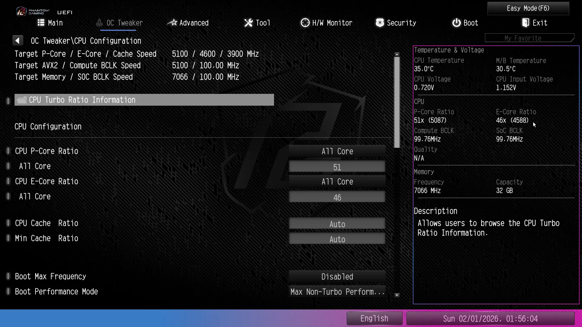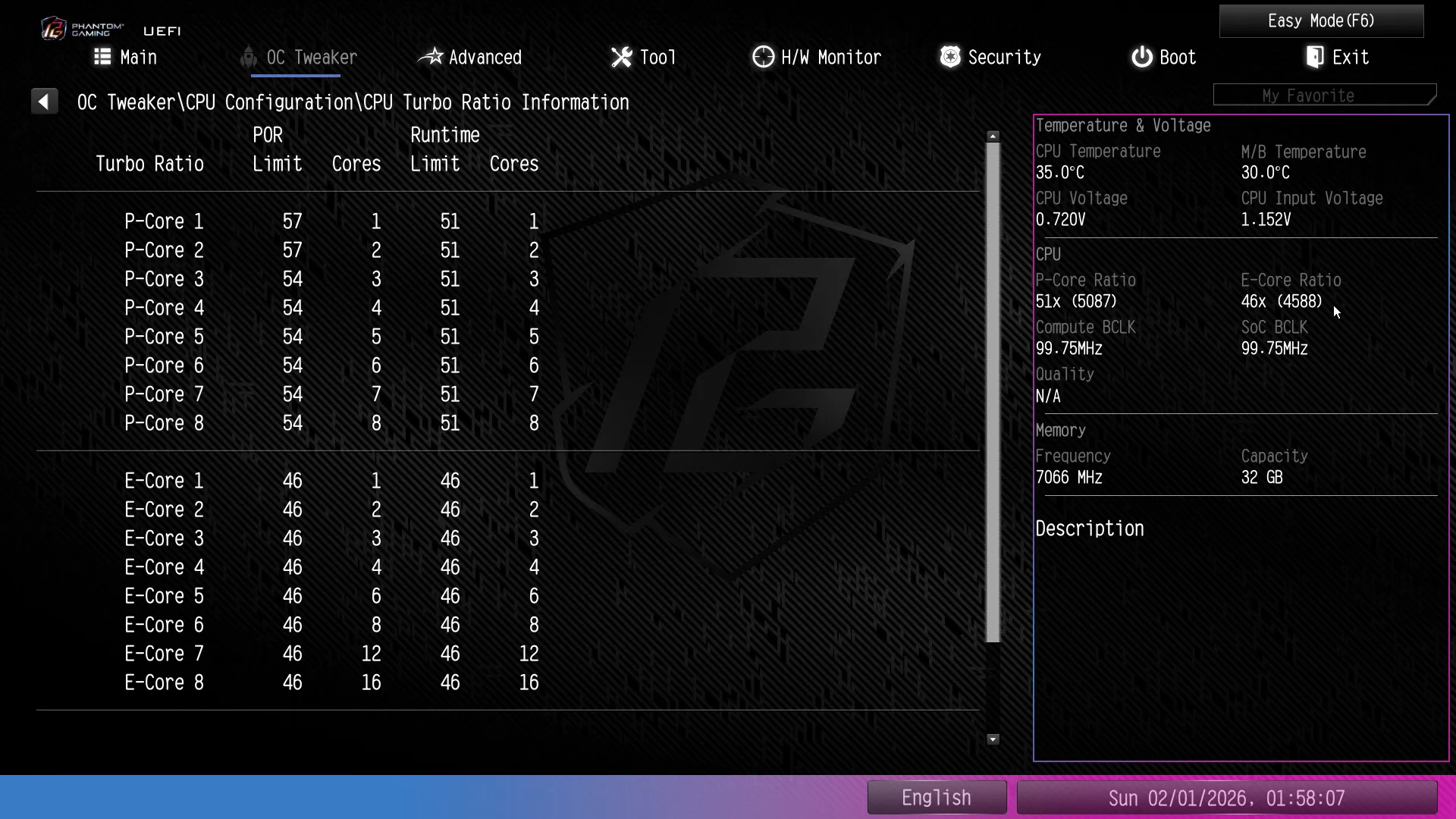 Pressing the F6 key from your keyboard’s function row switches this UEFI into a more elaborate Advanced Mode GUI. From there, we proceeded to its OC Tweaker menu to try getting higher-than-standard performance.
