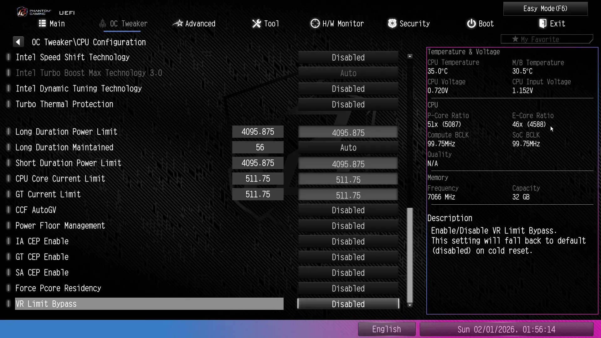 The cold reality of overclocking recent Intel high-end processors is that you really can’t, at least not without sub-ambient cooling, as they’re already overclocked by the factory and constantly throttling under heavy load to maintain the highest “Turbo Boost” possible. Intel’s overclocking lock on B860 platforms has little impact on how far we can push our system, as we’re trying to overcome thermal and power constraints that are already hitting throttle points (safety limits) at stock settings.