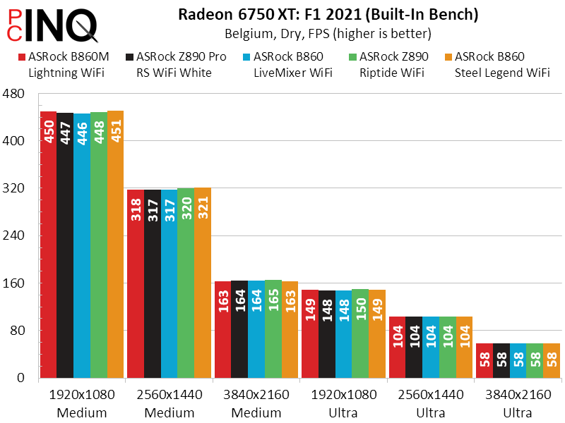 We see more of the same in F1 2021, with the B860M Lightning WiFi showing class average frame rates.