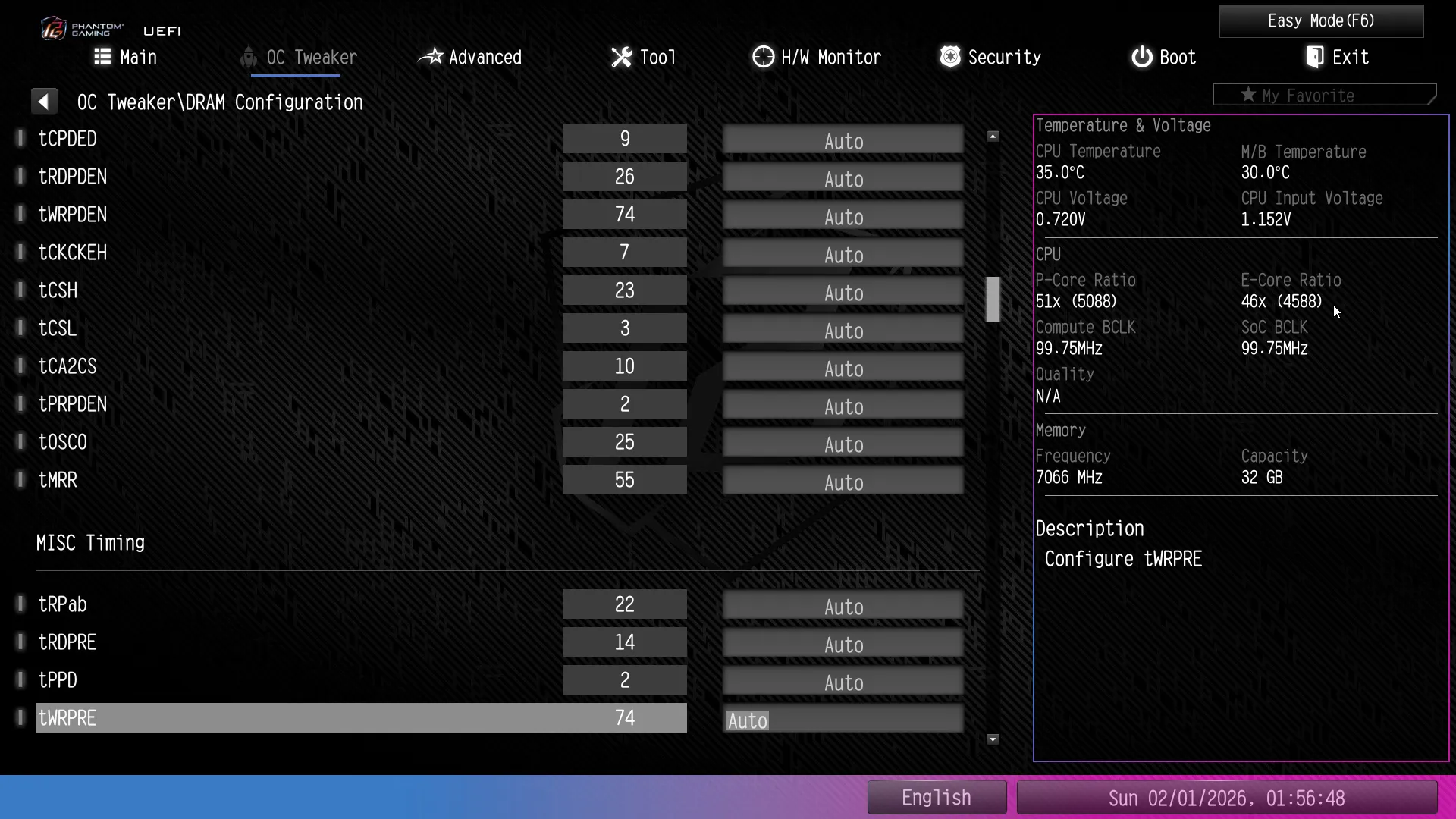 | DRAM | Crucial Pro OC Gaming Edition DDR5-6400 32GB Kit |