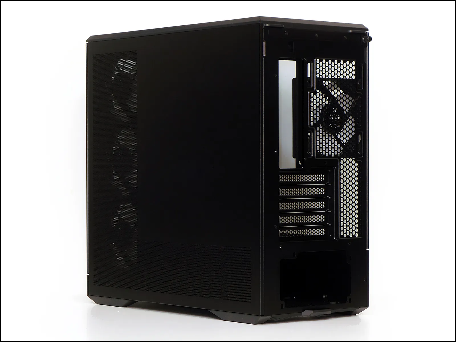 | Classic mid-tower dimensions Filled with beautiful reveresed ARGB fans Room for giant graphics cards | No dust filtration for intake fans Limited space for drive mounting No space for full ATX motherboards |