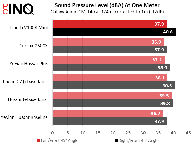 Noise measured from the right/front corner pushes the V100R to the second-worst average noise score.